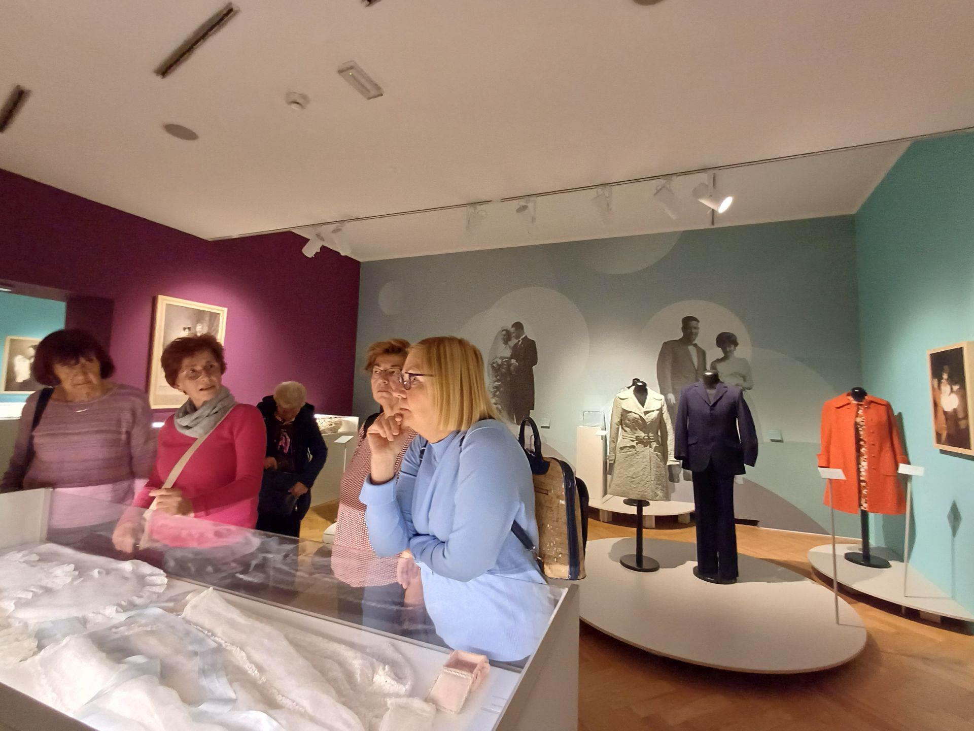 ….je naslov prekrasne razstave, ki jo je pripravil Mestni muzej, Ljubljana iz svoje zbirke in donacij predvsem ženskih oblačil v zadnjih skoraj dvesto letih. Razumljivo je, da smo jo etnologinje z veseljem obiskale in si jo ogledale pod vodstvom mladeniča, ki nam je povedal veliko zanimivega, marsikaj pa smo iz spominov izbrskale tudi same, saj smo nekatere dele oblačil nekoč nosile, ali pa so jih nosile naše mame in babice.