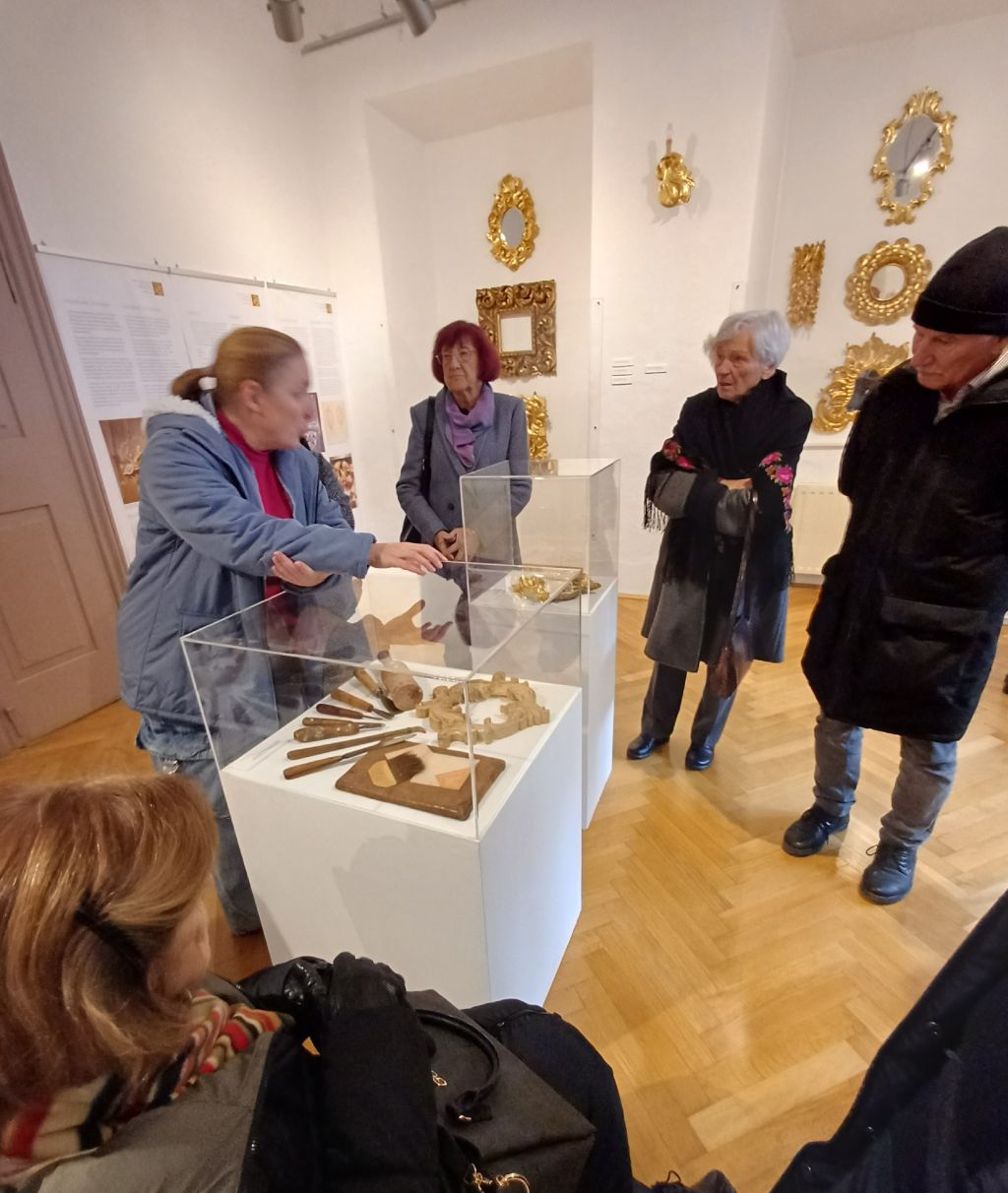 …nas je etnologinje v torek, 9. 12. 2025, zvabil na ogled razstave o rezbarju Maksu Bergantu (1912–1996). Naša članica Tadeja je njegova snaha in njena družina je prispevala veliko eksponatov, še posebej pa korespondenco z arhitektom Jožetom Plečnikom. Sodelovala sta pri prenovi cerkve sv. Benedikta v Stranjah, saj je Plečnik prepoznal Bergantovo izvirno mojstrstvo.