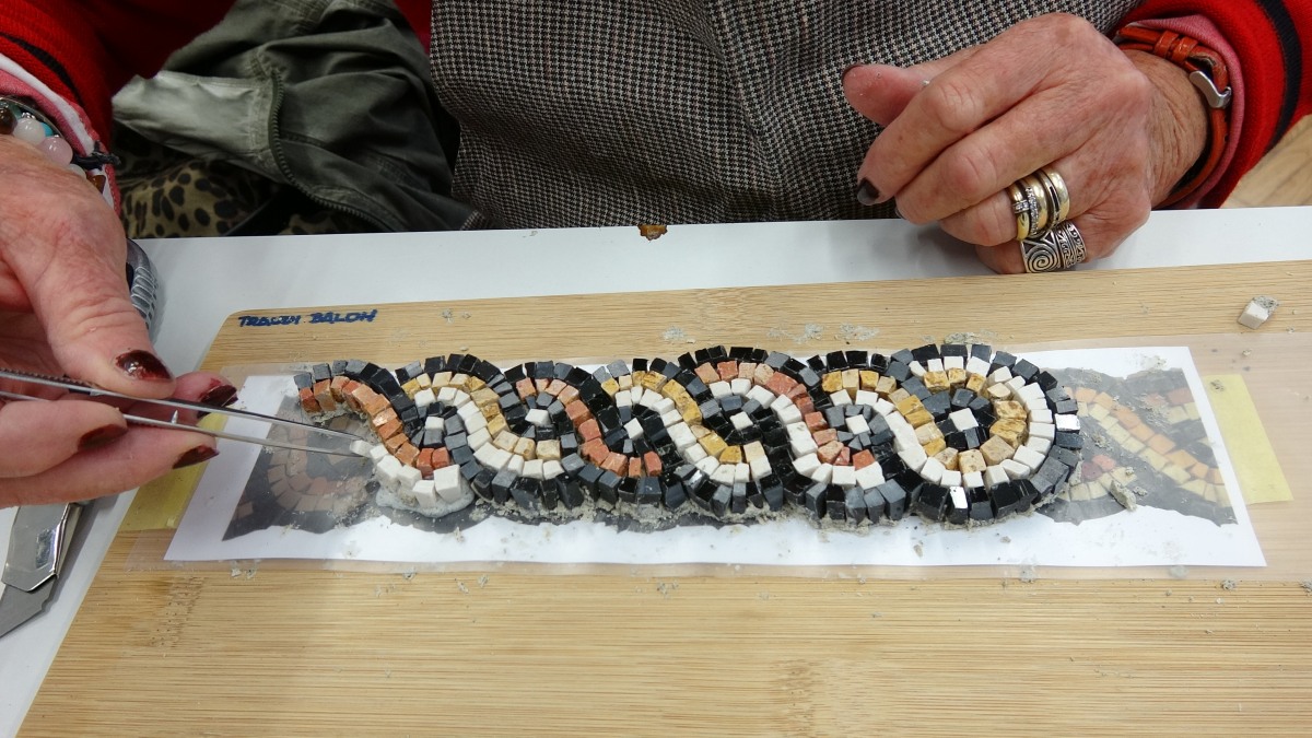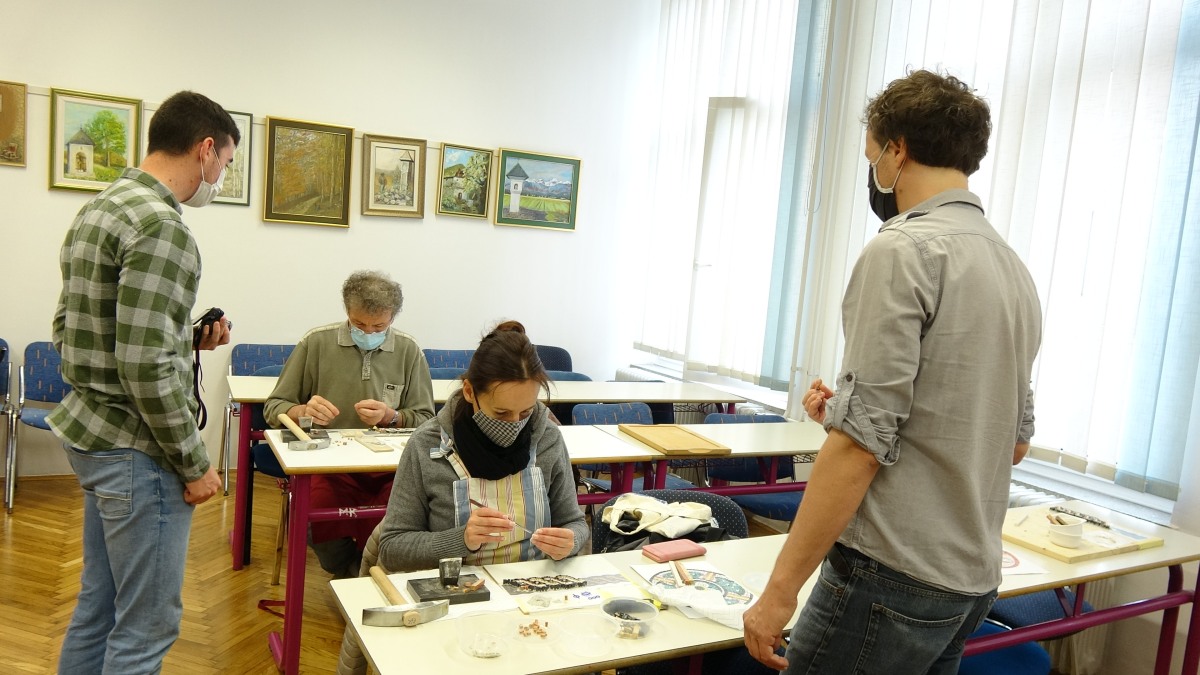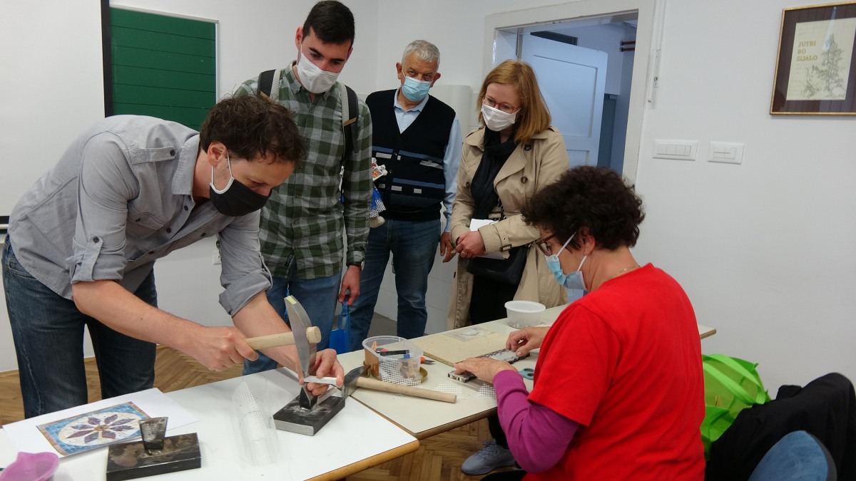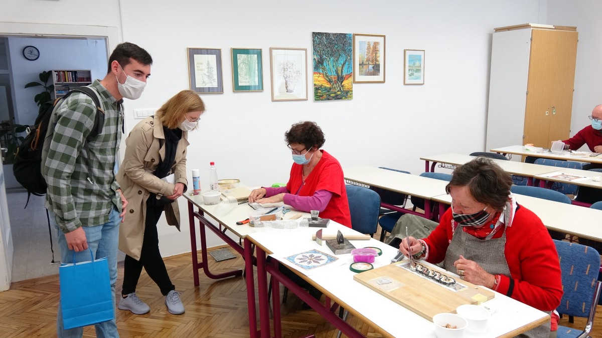 Marjan Ravnikar je goste sprejel s pozdravnim krajšim nagovorom, zatem pa vse povabil v notranje prostore Društva Lipa Domžale, kjer je ravno potekal krožek izdelovanja mozaika. Mentor krožka Aljaž Vidrajz, mojster Italijanskega mozaika, je gostom povedal nekaj besed o izdelovanju mozaikov, vsi pa so si v živo ogledali izdelavo mozaika slušateljev krožka. Marjan Ravnikar je gostom predstavil tudi izdelovanje in poslanstvo Unicefovih punčk, kjer s prodajo rešujejo revne otroke.