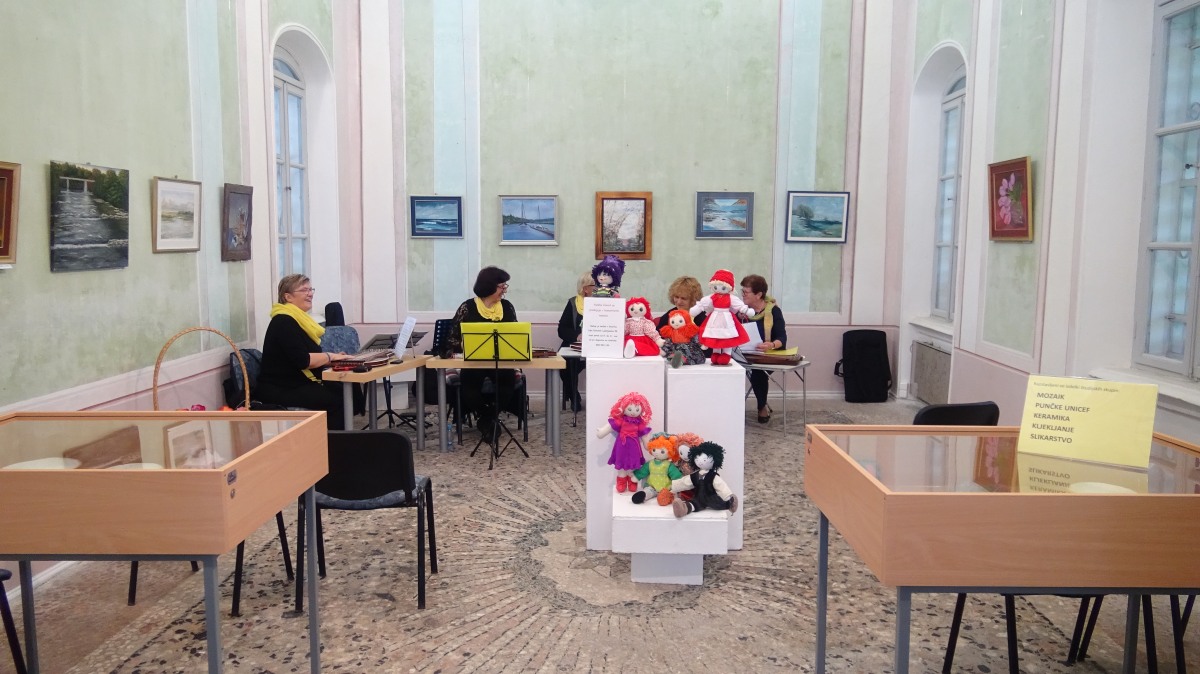 Vse nezavedno ali zavedno, kar v mladosti ni bilo časa ali možnosti uresničiti, se zrcali v čudovitih izdelkih klekljaric. Čipka je nežna kot dih, stkana iz tisočerih niti, ki poveže misli, ustvari podobo in ji vdihne življenje. Preplet slike in čipke je tako v simfoniji narave še nekaj več. Mentorica klekljaric je Marija Rupert. Keramika poskrbi, da se telo umiri, da roke udejanjano misli in vsak izdelek pripoveduje svojo zgodbo. Za keramičarje skrbi mentorica Breda Podbevšek. Tako kot punčke UNICEF, ustvarjene z ljubeznijo in posebnim namenom. Humanitarna dejavnost, ki prinaša močno sporočilo, da skupaj zmoremo. Mentorica izdelave punčk iz cunj je Metka Paternoster. »Kamen na kamen palača …« Drobni kamenčki mozaika, ki umirijo roke in srce in vdahnejo življenje kamnu, ki je lahko tudi ljubezen. Mentor mozaika je Aljaž Vidrajz. Ko se pogled zazre na steno, kjer visijo slike slušateljev slikarskega krožka, pomisliš na velike umetnike, katerih dela so nesmrtna in občudovana že stoletja. Prelepe slike narave, ki nas obdaja, tihožitja, človeka in živali, so opomnik, da so umetniki čisto blizu nas. Da njihove oči vidijo in roke ustvarijo, kar ni dano vsem smrtnikom. Za slikarje in slikarke skrbi mentorica Marija Mojca Vilar.