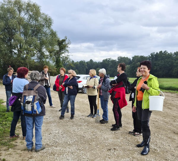 Tokrat smo se odločile za pohod po travnikih in gozdu v okolici vasi Suhadole. Spoznale smo baldrijan, ki je odlično zdravilno zelišče za pomiritev in dober spanec. Oktober je že pravi čas za izkopavanje njegovih korenin. Nekatere so ga izkopale, da ga bodo posadile v svojih vrtovih, druge bodo korenine uporabile za pripravo čajev ali pa jih bodo spremenile v tinkture. Spoznale smo tudi gabez, ki je v ljudskem zdravilstvu znan kot "celivec kosti". Posebej smo prisluhnile opozorilu, da je sicer izjemno učinkovit pri celjenju zmečkanin, zvinov ali oteklin, vendarle neprimeren za notranjo uporabo in neprimeren za dolgotrajnejšo rabo. Vsebuje določene alkaloide, ki bi ob dolgotrajni rabi lahko privedli do poškodb jeter in drugih obolenj. Na travnikih ni manjkalo še cvetočih zdravilnih rastlin kot so bela in črna detelja, potrošnik, regrat in še marsikaj. Pot smo nadaljevale skozi gozd, kjer smo utrjevale ali pa na novo pridobile znanje o glogu, jesenski resi, lapuhu ter pravem in divjem kostanju.