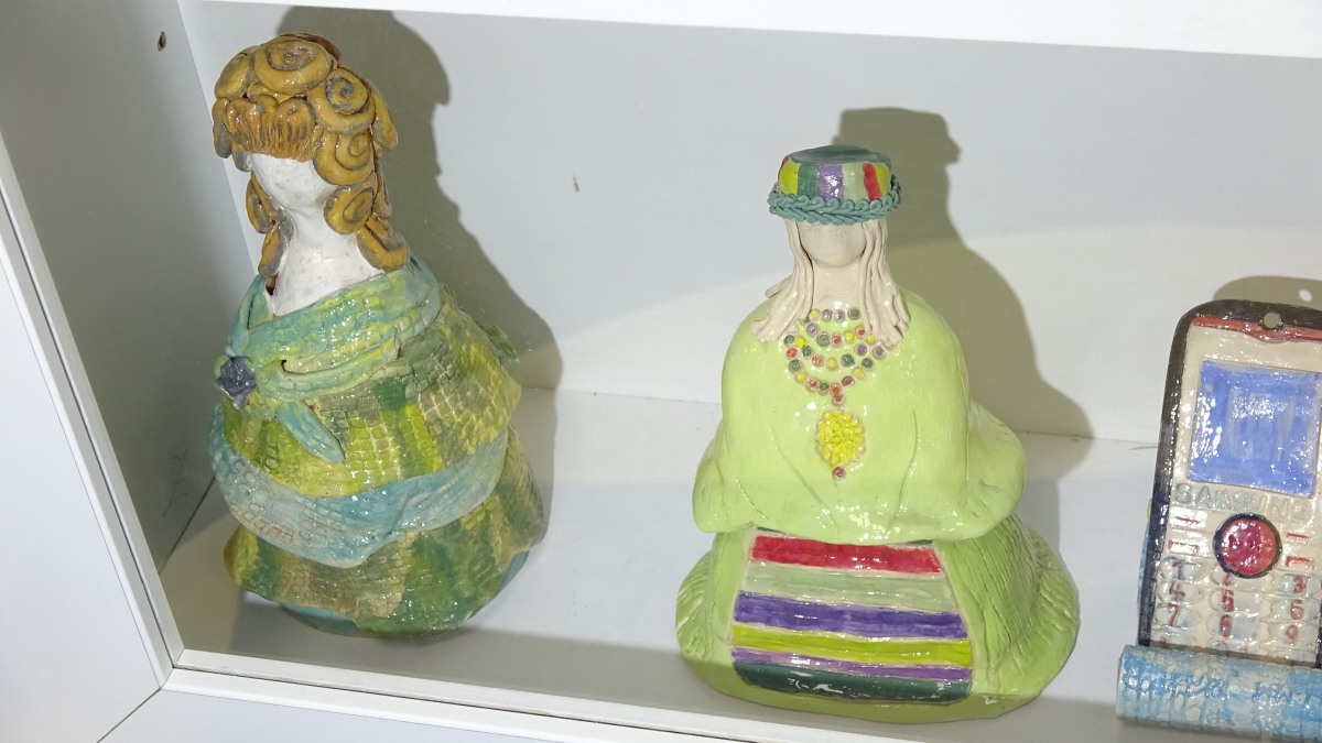 V knjižnici Domžale so na ogled svoje izdelke postavile: Barbara Bučinel, Marjana Golič, Gordana Halič, Andreja Jarc Pogačnik, Franc Kerč, Jožica Merljak, Bojana Pšak, Rozi Drolc, Mirjana Kavčič ter Marjana Kolar. Mentorica keramičnega krožka je Breda Podbevšek.