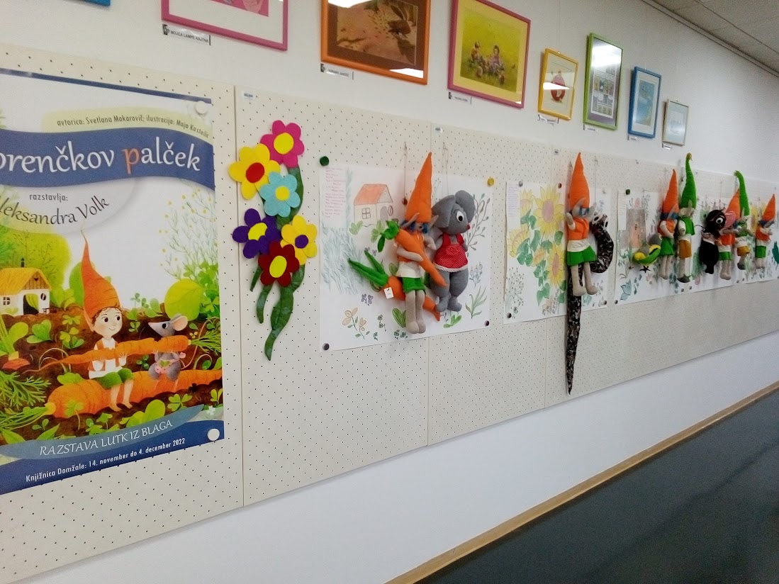 Dan je čedalje krajši, listje se vrtinči po cestah, pločnikih in parkih…ko dežuje, ali pa mrzlo zapiha, se raje stiskamo v toplih kotičkih. Take nam ponuja tudi Knjižnica Domžale, kjer naša sošolka pri etnologiji Sanda Volk vsako leto izdela junake kakšne nove pravljice. Letos je izbrala zgodbo Svetlane Makarovič Korenčkov palček in po ilustracijah Maje Kastelic s šivanko, z živio pisanim blagom in z veliko volje in potrpljenja vdihnila lutkam življenje, da pripovedujejo igrivo zgodbo. Poleg oranžnega palčka je zelo zanimiva kača - nestrupena belouška, ki si domišlja, da lahko straši otroke in palčke. Sodelujejo pa tudi miške, nedvomno ljubiteljice korenja …