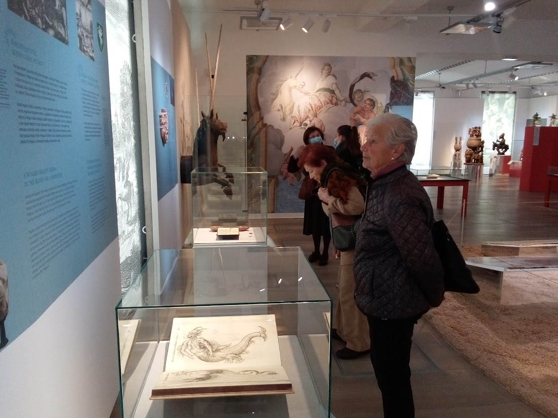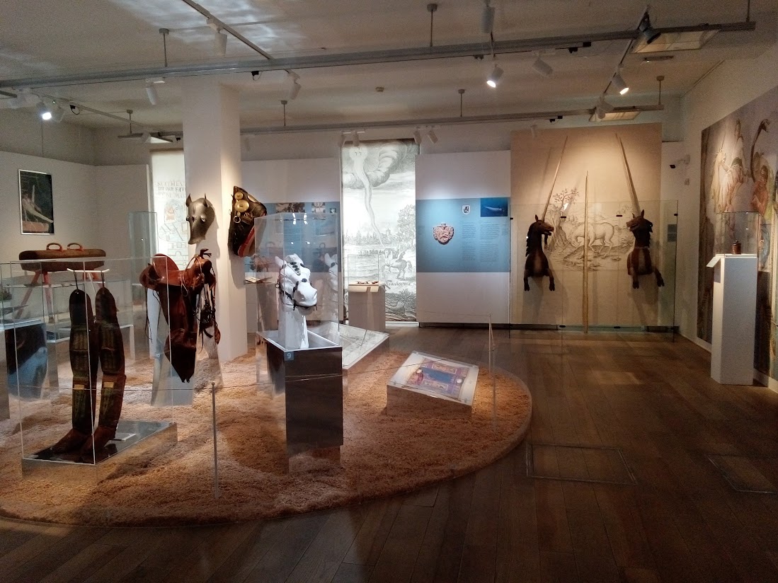 Naše učilnice so kar naprej zasedene s predčasnimi volitvami, zato smo etnologinje danes izbrale ogled razstave v Slovenskem etnografskem muzeju z naslovom Sveti konji - nebesni jezdeci. Predstavili so bogato zapuščino mitološkega in simbolnega pomena konjev in njihovih hibridnih različic, med katerimi sta v ospredju Pegaz in samorog. Vidimo lahko izvirni rog samoroga. Simbolna vloga konjev se povezuje tudi s konjeniško opremo, na kateri lahko najdemo simbolne elemente zaščitne magične moči.
