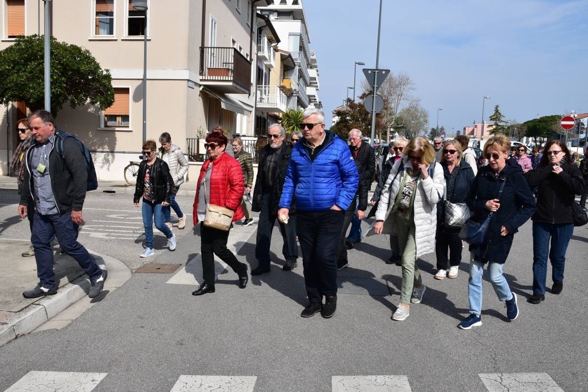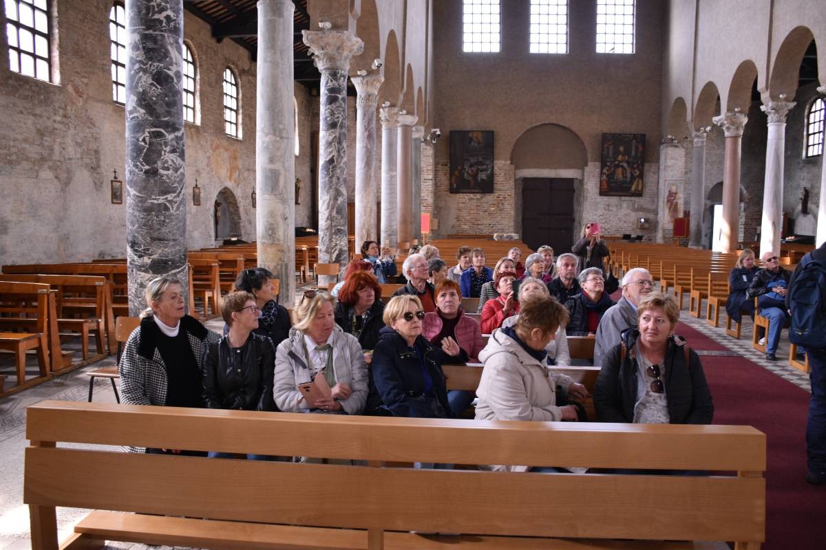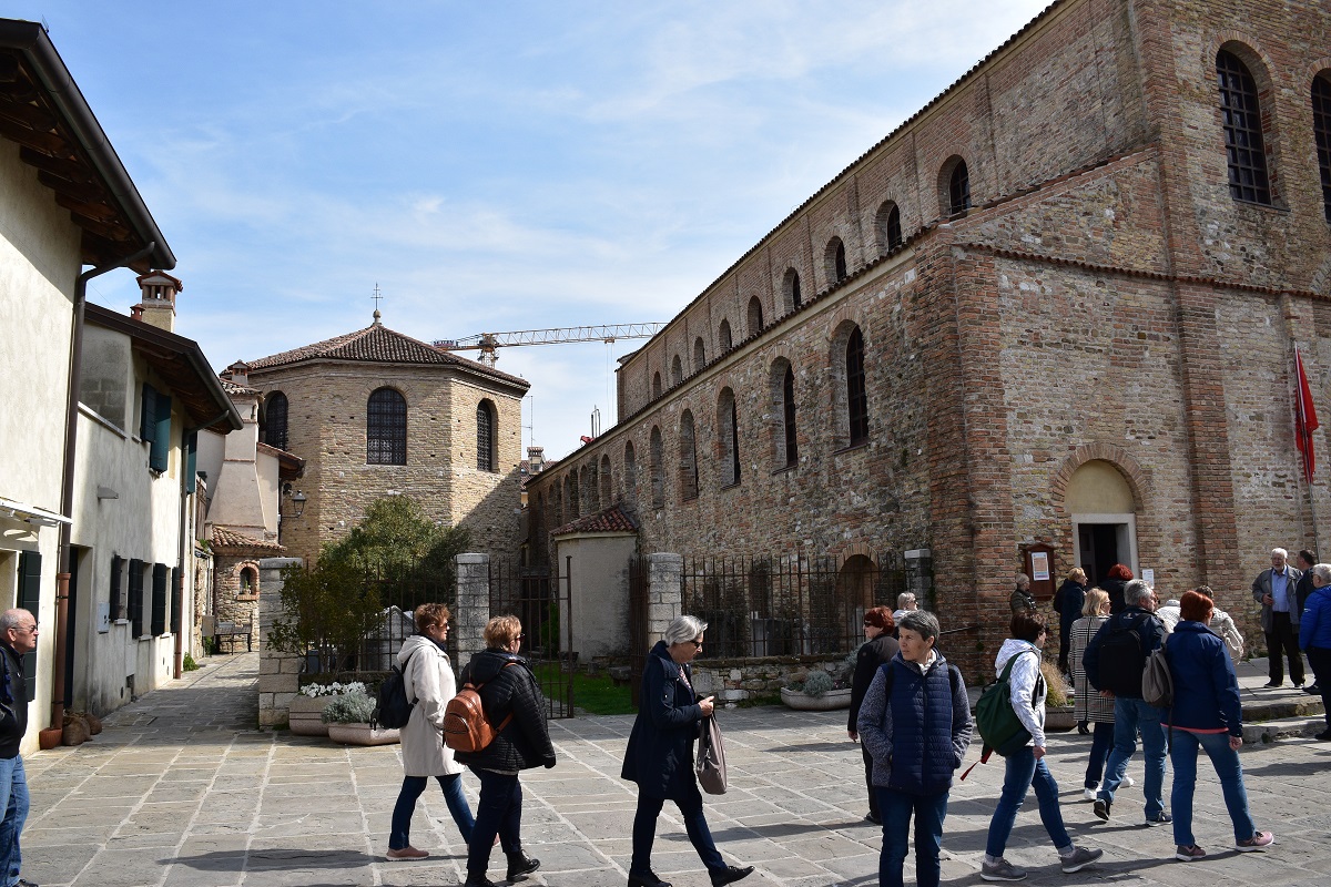 Po dolgem nasipu smo se, mimo otoka Barbana, odpeljali v Oglej, Aquilejo. Ob dobro ohranjeni Poponovi baziliki nam je vodič predstavil zgodovino oglejskih patriarhov, krajev, pokrajine. Presenetljivo dobro so ohranjeni številni, starodavni mozaiki in zanimivi ostanki nekdaj rimskega mesta.
