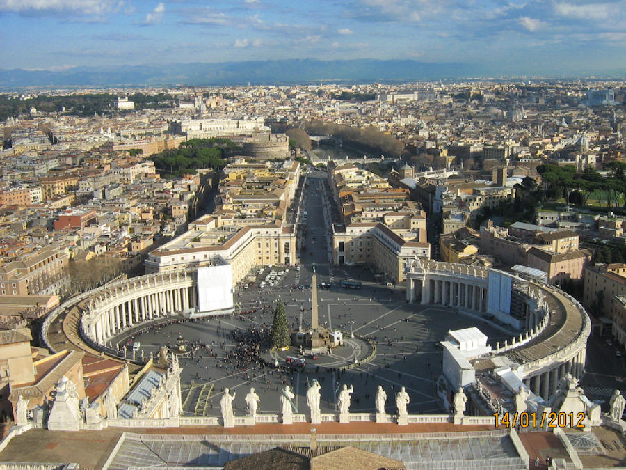 Pogled iz kupole bazilike na trg sv Petra ter cesto sprave (Vatikan)
