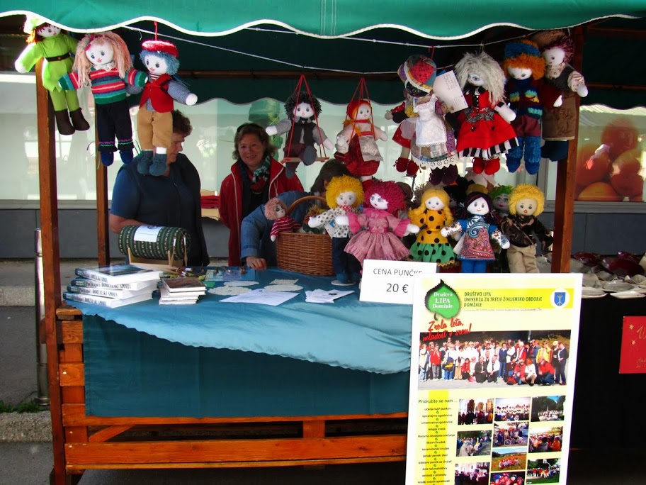 Predstavile smo izdelke iz idrijske čipke, delo klekljaric in domžalske Špelce, ki so jih izdelale prostovoljke Unicefovega programa "punčka iz cunj" ter Lipin program dejavnosti za študijsko leto 2013-14. Na naši stojnici smo predstavili tudi najnovejšo knjigo Matjaža Brojana, čudovito ilustrirano monografijo o nekdanjih Domžalah in ljudeh, ki jo je poimenoval: Počivajoči DOMŽALSKI SPOMINI.