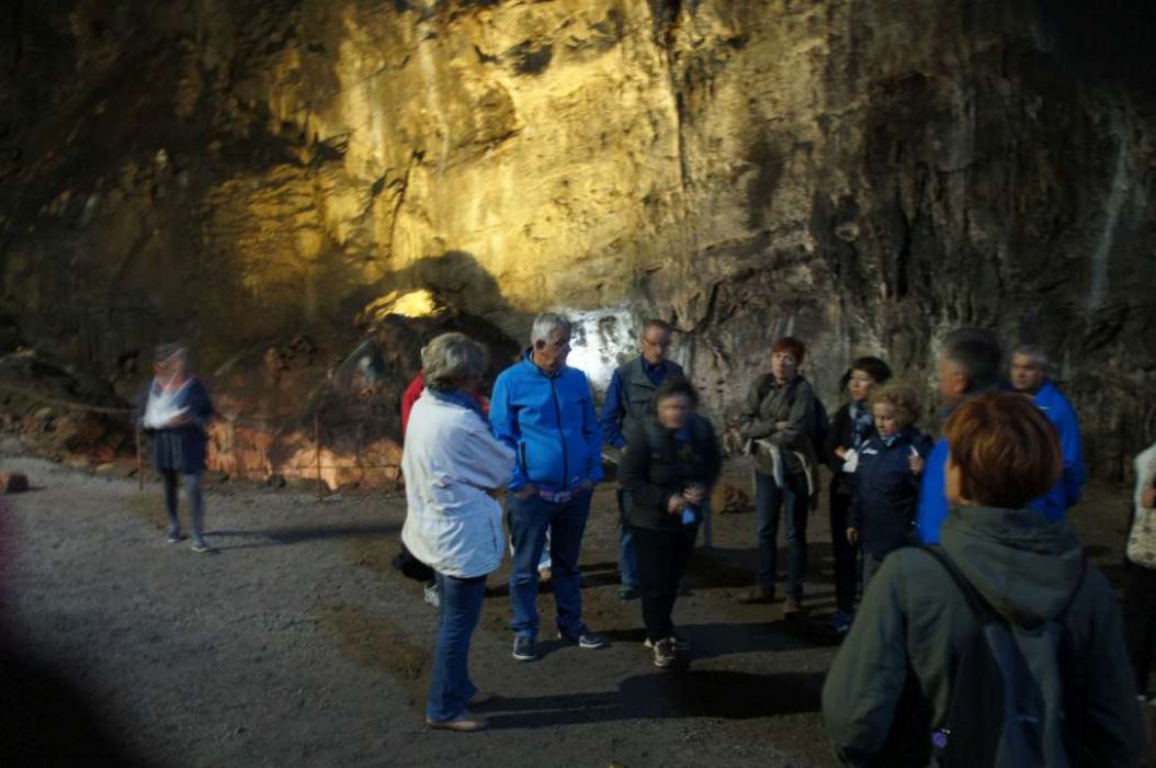 Pot nas je naprej vodila v Divaško jamo, katero je odkril Gregor Žiberna leta 1884. Jama je dolga 700m, 500 m pa je urejene za turistične oglede. Spustili smo se do globine 50 m in si lahko ogledali kapniško bogastvo Divaškega Krasa.