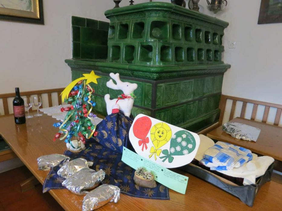 Najlepši za nas je zadnji dan pouka. Tokrat smo prinesle različne praznične recepte, jih zložile v vrečo, potem pa izvlekle vsaka svojega. Avtorice so posamezni recept tudi komentirale, predvsem zakaj so ga izbrale. Velikokrat so nekatere jedi že zelo stara družinska tradicija, npr. Miklavževi parklji Ane Gramc, Marijin krompir v oblicah z »ženofom«, Majdini štruklji s čebulo in orehi, Martini medeni piškoti, kot jih je delala njena babica, Jožičine kandirane vrtnice…Marinka je prispevala recept za lahke flancate in jih prinesla s seboj kar za pokušino.