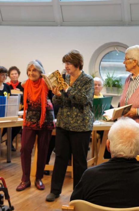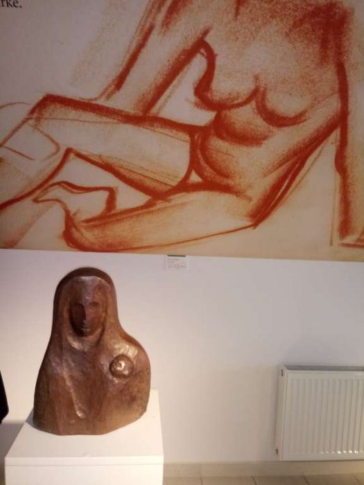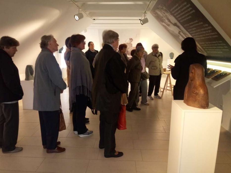 Naslednji torek, 22. 10. 2019, ko imamo sicer učne ure etnologije, pa smo si ogledale razstavo ob stoletnici rojstva Franceta Ahčina v Menačenkovi domačiji, njegovi rojstni hiši. Vodila nas je kustosinja Katarina Rus Krušelj in predstavila mejnike njegove življenjske poti, ki jih na razstavi vidimo kot slikovno in snovno gradivo. France Ahčin je bil 1943 vpisan na Umetniško akademijo v Firencah, od tod pa ga je pot preko Rima vodila v Argentino, kjer je deloval kot kipar, ukvarjal pa se je tudi z lončarsko obrtjo. Zelo si je želel, da bi njegova dela pripotovala v domovino in s stalno zbirko na domačiji na v KD F. Bernika se mu je želja izpolnila.