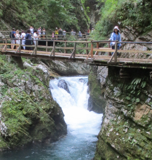 1,6 km dolga soteska Vintgar je zarezana med veličastnimi stenami hribovja, biser v tej soteski je reka Radovna s svojimi slapovi in tolmunčki. Pot nas je vodila po lesenih mostovih v prijetnem hladu, mimo slapa Šum, ki je največji rečni slap v Sloveniji. Med hojo smo dobili, kar zajetno razlago od Metke Zupanek, ki je preživljala otroštvo v tem prečudovitem okolju. Živela je čisto blizu.