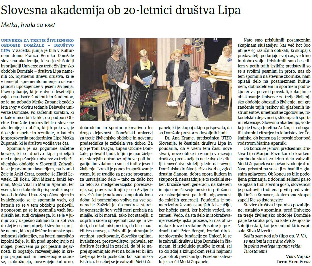 - Slovesna akademija ob 20-letnici Društva Lipa s podnaslovom Metka, hvala za vse!