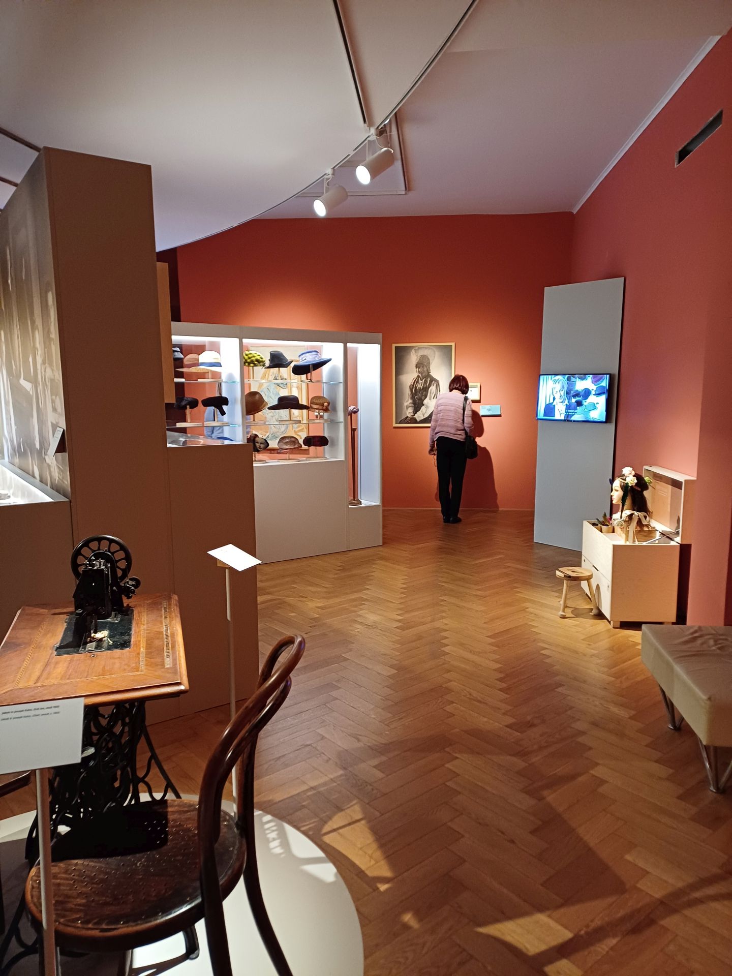 Prvi zbiralec in proučevalec je bil Angelos Baš, etnolog in zgodovinar. Raziskoval je oblačilno kulturo vseh socialnih slojev od 16. do 19. stoletja. Prav zato so na začetku razstave tudi kopije fresk, na primer z nam bližnjega Sv. Primoža nad Kamnikom, ki predstavljajo tkalko v lepi obleki. V preteklosti, smo izvedele, so bila oblačila strogo določena glede na socialni sloj in glede na priložnost, ko so jih nosili_e. Kmetje niso smeli imeti svilenih oblek, tudi barvanih ne. Krojači so bili lahko samo moški, edino oblikovalke klobukov, modistke, so bile ženske. Šele s strojnim tkanjem in šivanjem so v tekstilno industrijo vstopile tudi ženske. Zanje je bil to po eni strani zaslužek, po drugi pa pot v kronične bolečine in poklicno invalidnost. V muzejskih prostorih so eksponati razdeljeni po zanimivih naslovih, eden izmed njih je Od krsta do krste. V vitrinah najdemo tako imenovane »pindekelčke«, ki smo se jih spomnile še iz petdesetih let prejšnjega stoletja. V njih so zavijali dojenčke, ko so jih nesli h krstu, pa tudi k zdravniku.