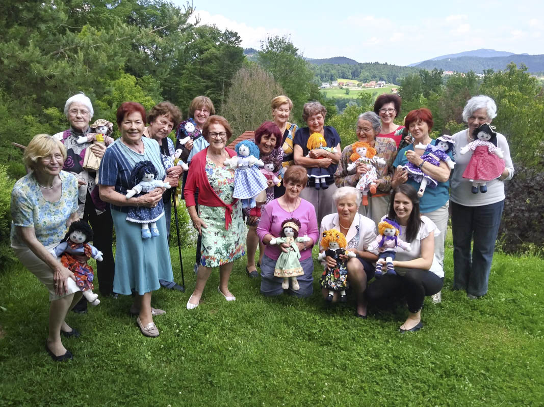 Nato se je prisrčno zahvalila animatorki Manici za povezovalno in organizatorsko vlogo. Zahvalile smo se tudi naši mentorici Ani za vse letošnje priprave gradiv. Jožica ji je podarila lončnico, vzgojeno iz rastline, ki jo je pred petdesetimi leti prinesla z mladinskega potepanja po Rusiji. Andreji smo se zahvalili, ker je vsa leta Vido zvesto vozila na Lipo, zdaj pa tudi na srečanja ob kavici. Sandi smo podarili cvetje, saj nam vselej pripravlja ročno narejene spomine na naša šolska in družabna druženja. Tokrat je spet prekosila samo sebe. Za vsako od nas je izdelala punčko. Vsaka je imela svoje oblačilo in svoje ime. Potem smo morale potegniti iz vrečke listke in poiskati ujemanje imena na listku s punčkinim imenom… Tako je čas ljubeznivega in veselega druženja spolzel v pozno popoldne. Zelo dolgo se ga bomo spominjale, posebej pa Vidinega iskrenega veselja ob praznovanju jubileja.