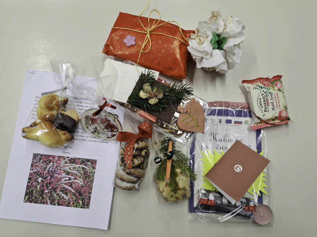 Potem ko smo tako obdelale kar nekaj črk, pa smo najprej začele z obdarovanjem. Nekaj zadnjih ur smo namenile hišnim imenom in pripovedi smo posnele. Animatorka sem povedano zapisala in nabralo se je kar devet strani besedila. Dodala sem voščilo, natisnjen zapis – HVALA, MARJAN! – je tako postal moje darilo. Tako sem se izmuznila peki prazničnih priboljškov. Ne morem se namreč kosati z vsemi sošolkami, odličnimi gospodinjami, ustvarjalkami domiselnih darilc…