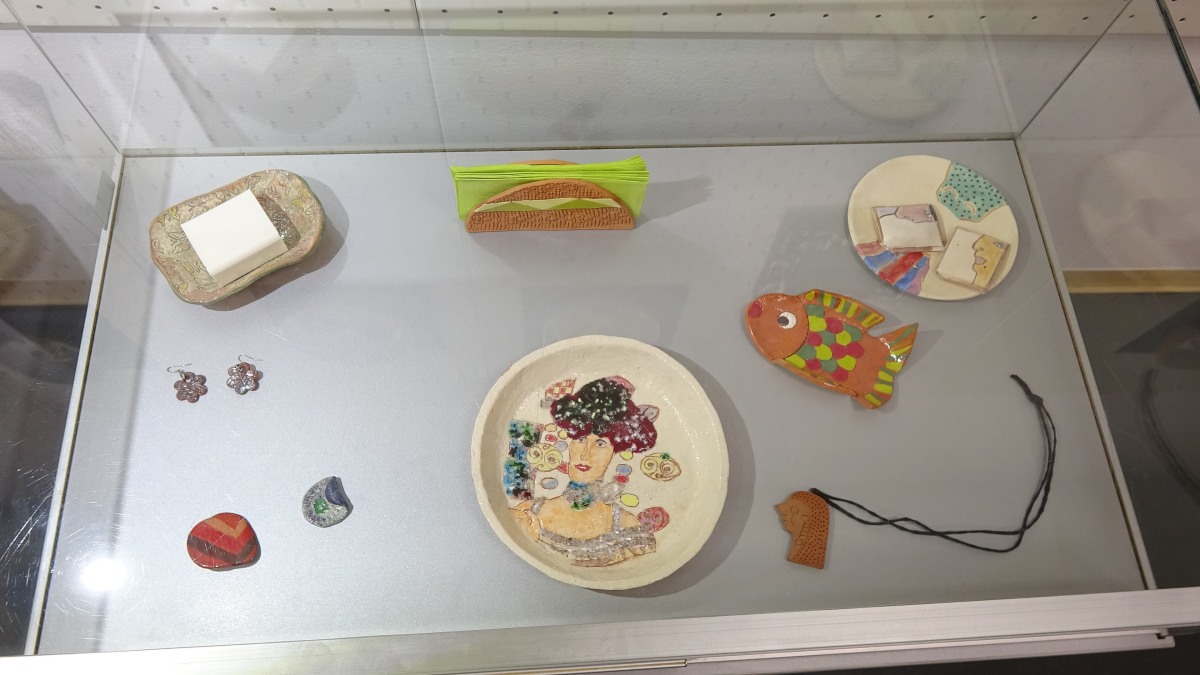 V knjižnici Domžale so na ogled svoje izdelke postavile: Barbara Bučinel, Marjana Golič, Gordana Halič, Andreja Jarc Pogačnik, Franc Kerč, Jožica Merljak, Bojana Pšak, Rozi Drolc, Mirjana Kavčič ter Marjana Kolar. Mentorica keramičnega krožka je Breda Podbevšek.