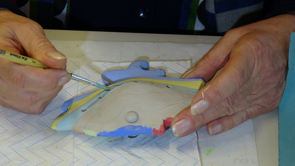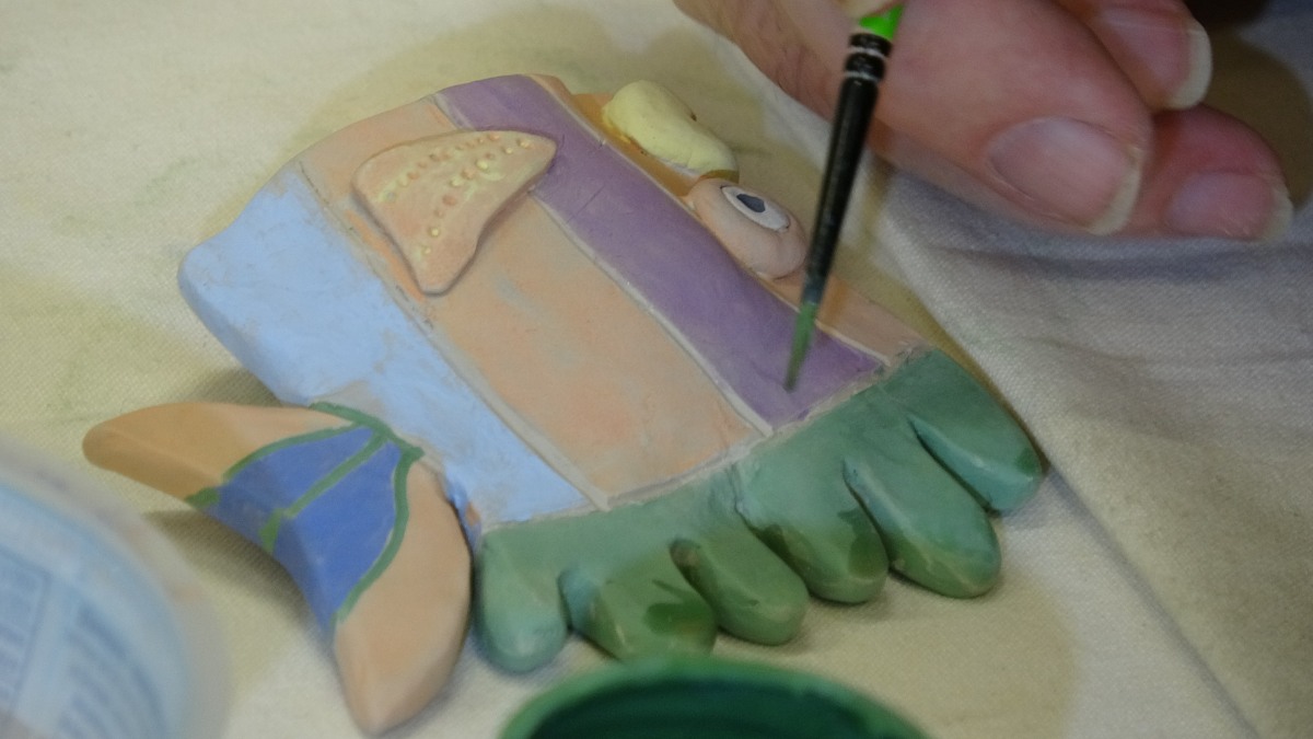 Obiskali smo njihov študijski krožek, kjer smo si ogledali obdelavo že narejenih keramičnih izdelkov, zatem pa tudi barvanje s posebno barvo za glino. Po sušenju bodo izdelke dale še v peč, da bodo dobili trdoto in končno podobo. Mentorica nam je še zaupala, da velikokrat pečejo glino dvakrat, saj je takrat izdelek še boljši in trpežnejši.
