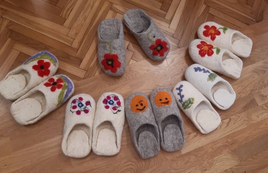 Po sedmih urah dela smo samo še občudovale polstene copate, ki so nastali pod našimi rokami. Razvile smo motivacijo, da izdelamo še kakšen par za svoje bližnje in da se udeležimo še naslednjih delavnic z mentorico go. Emi, v organizaciji Društva Lipa Domžale.