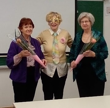Potem je seniorska različica Jurčka v »imenu celega razreda« voščila slavljenkama, onidve pa sta razgrnili prt in ponudili slastne pustne krofe …