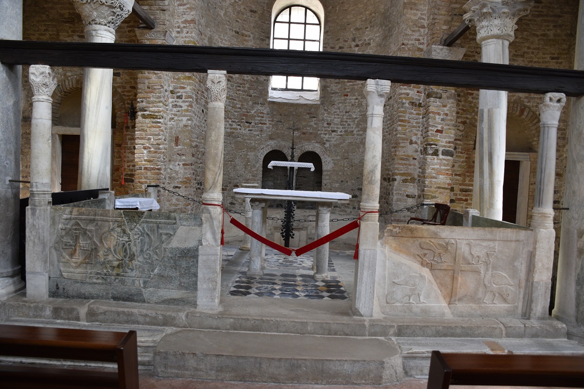 Po dolgem nasipu smo se, mimo otoka Barbana, odpeljali v Oglej, Aquilejo. Ob dobro ohranjeni Poponovi baziliki nam je vodič predstavil zgodovino oglejskih patriarhov, krajev, pokrajine. Presenetljivo dobro so ohranjeni številni, starodavni mozaiki in zanimivi ostanki nekdaj rimskega mesta.