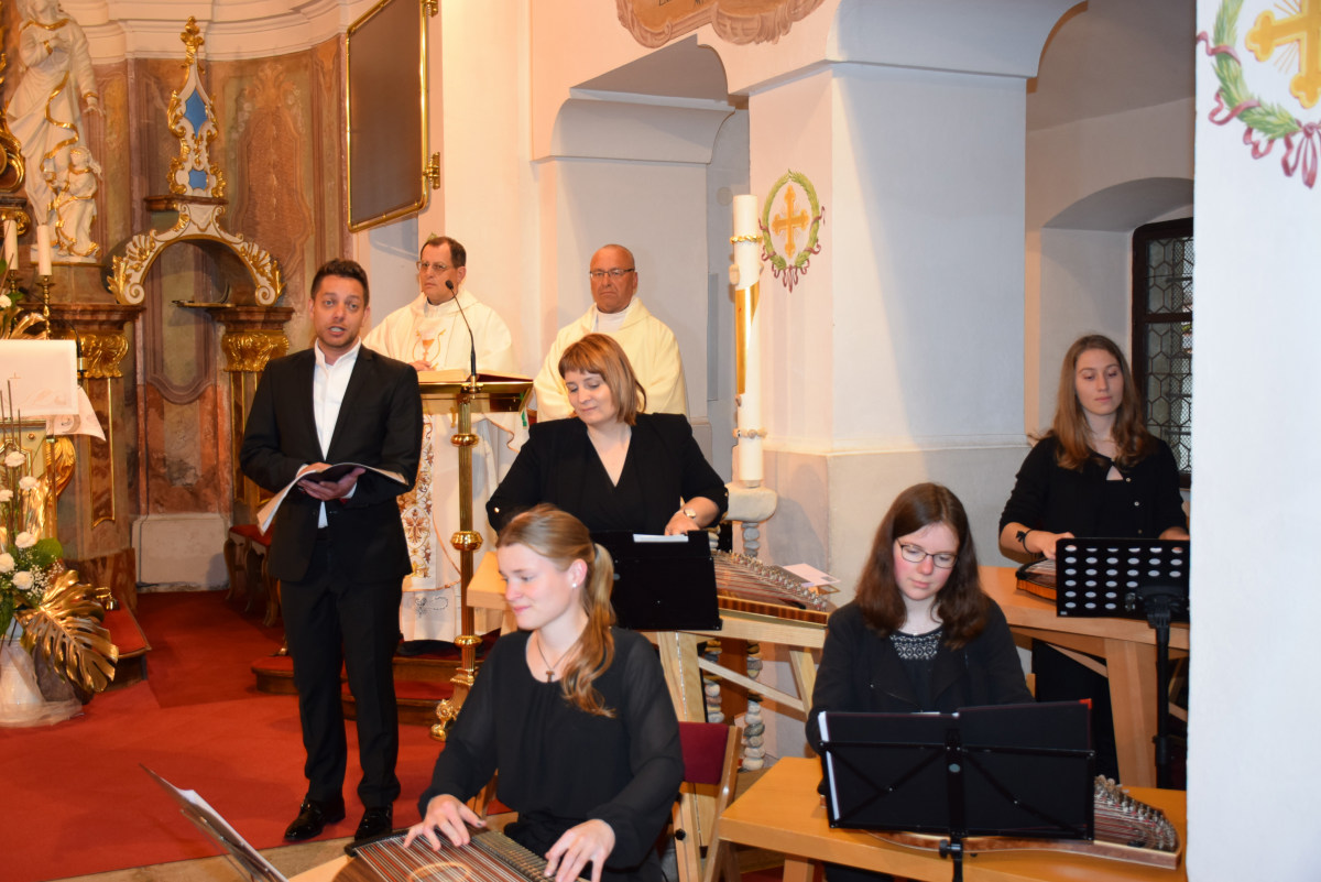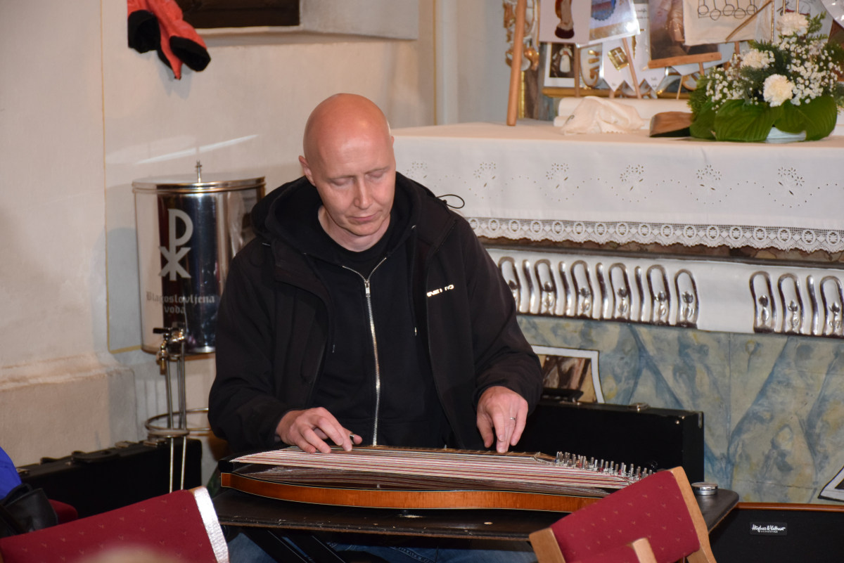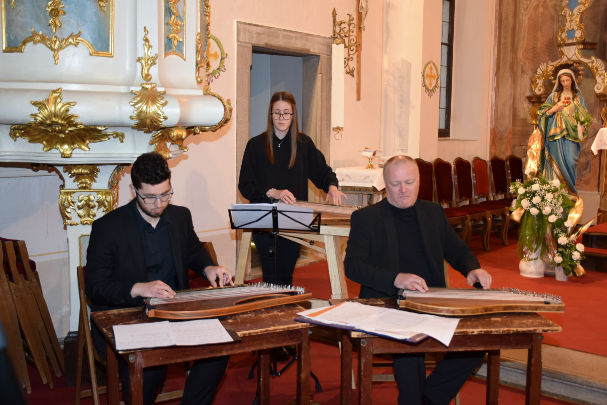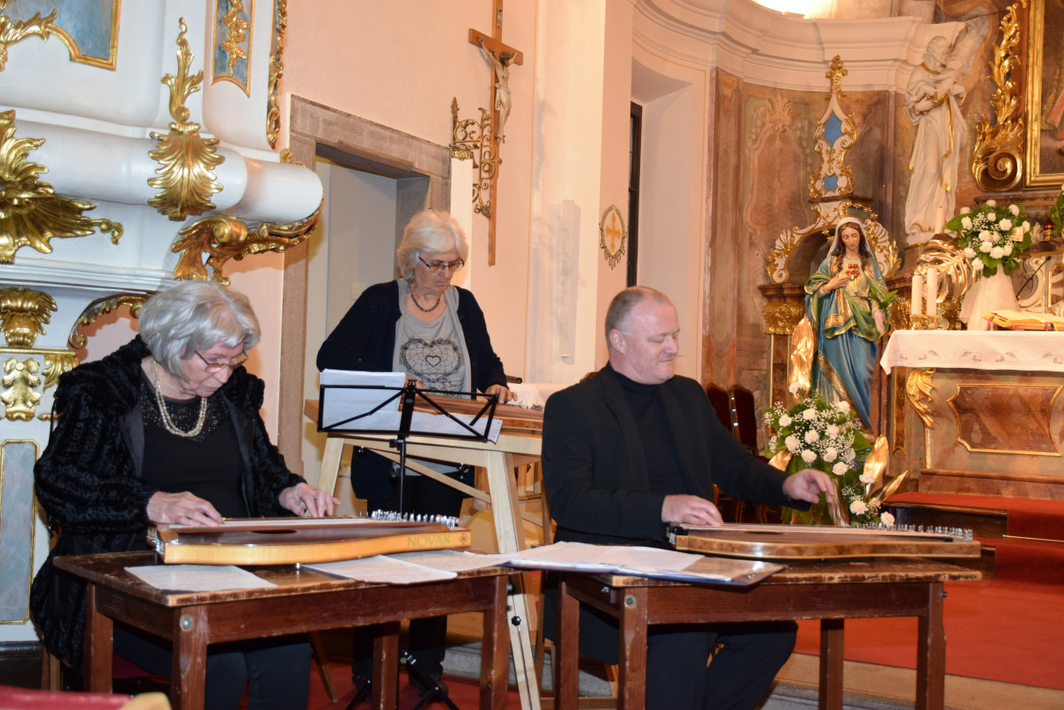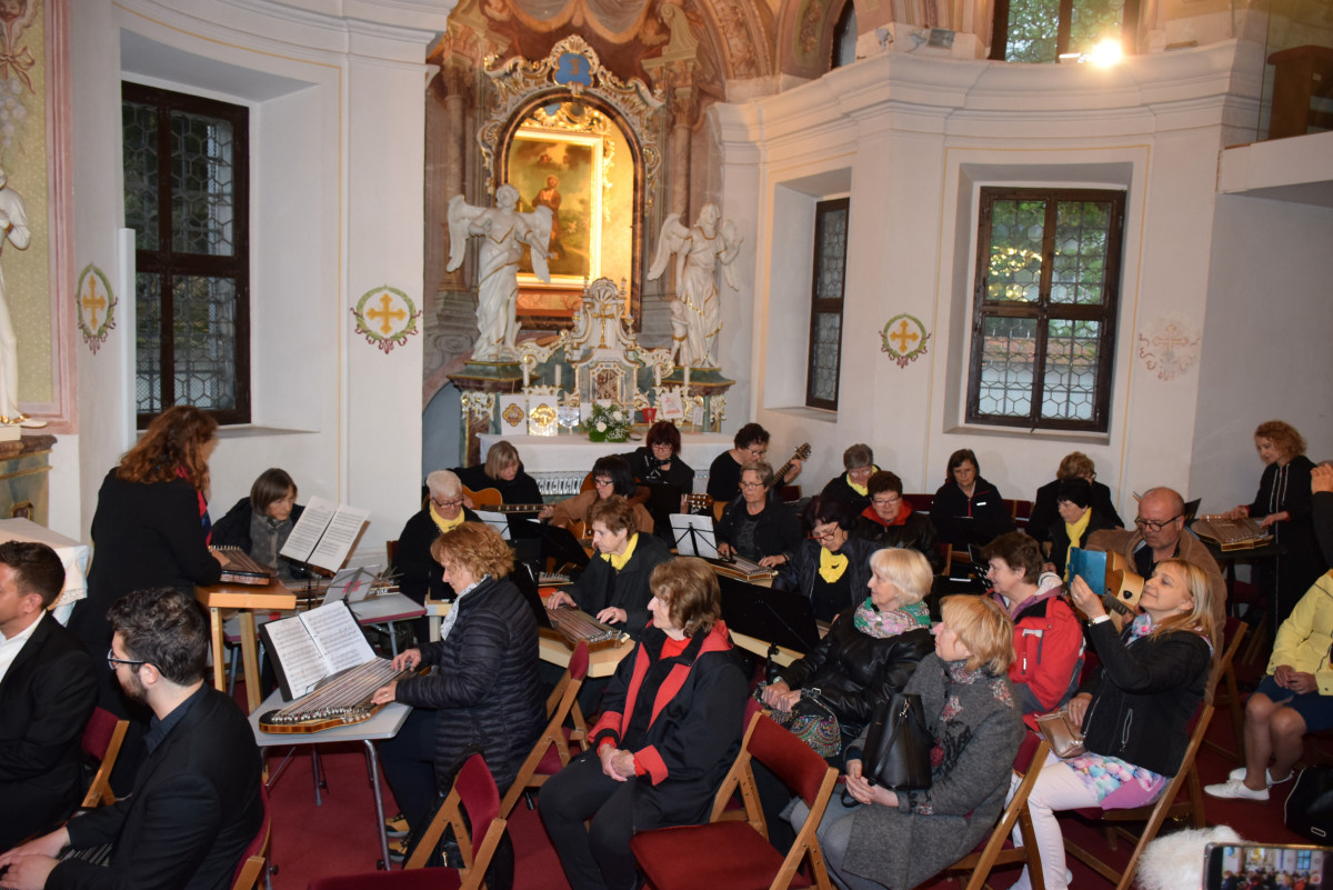 V nadaljevanju je povabil navzoče s prošnjo, da naj pripeljejo v soboto čim več obiskovalcev na ploščad pred Vele, ko se v središču mesta pričenja tradicionalna in težko pričakovana citrarska slovesnost, saj se bodo na več lokacijah po Domžalah predstavile različne citrarske skupine. Letošnja prireditev je mednarodna, saj bodo med nami tudi citrarske skupine iz tujine. Med njimi je skupina citrarjev pod imenom Svetlusky iz župnišča v vasici Lukov pri Zlinu na Češkem. Tamkajšnji župnik Jan Mach, ki je danes somaševal z dr. Andrejem Markom Pozničem, je tudi njihov učitelj citer. Vsako leto organizirajo poletni citrarski seminar, kjer poučuje njihov najbolj znani citrar Michal Müller, ki smo ga nocoj slišali z dvema skladbama. Lahko se pohvalijmo, da so se poletnega seminarja udeležili že tudi naši učitelji Peter Napret, Silvia Igerc in Damjana Praprotnik.