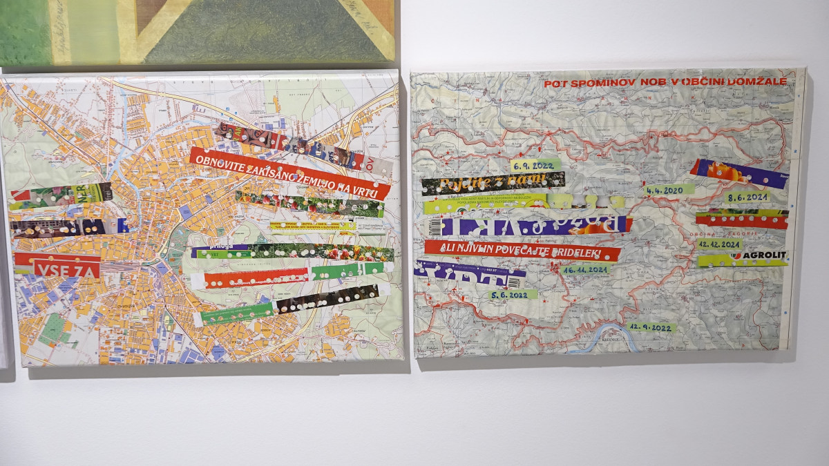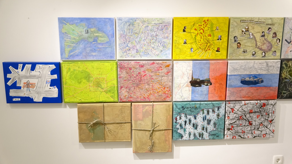 V prvem delu se v ravni liniji nizajo diptihi osebnih pripovedi v serijo popotniških pričevanj, v drugem delu pa so se posamezni utrinki na temo mapiranja po zgledu aktualne ameriške umetnice Paule Scher, z raziskovanjem sebi znanih, sosedovih in tistih bolj oddaljenih, še nepoznanih poti in potovanj v dežele in kraje, kjer je polno navad in običajev, prelitih v sliko. Tako v inštalaciji večih slik skupaj vidimo globus, zemljevidne karte, kjer se zgodbe o prehojenih poteh vrstijo, prepletajo v instalacijo posamezih kolažev, ki se zlijejo v skupno zgodbo.