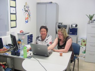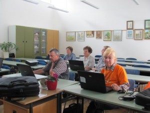 Iz Lipe so se prijavili mentorji Vinko Kurzweil, Marija Rupert in Mojca Korošec, novost pa je letos šest dijakov iz Gimnazije Domžale, ki so prispevali svoje znanje za poučevanje starejšie generacije. Po kratkem uvodu, so se formirale skupine: čisti začetniki, ki jih je prevzel Vinko in dvojice z Marijo in Mojco ter s simpatičnimi mladimi gimnazijci. Slušatelji, ki so imeli že nekaj predznanja, so svojim mentorjem povedali, kaj jim še dela težave pri uporabi računalnika in še kakšno specialnost /ureditev fotografij, delo v wordu .../, ki bi jo želeli spoznati. Teh predvidenih deset ur je tako hitro minilo, da nisem uspela niti fotografirati dela v parih z gimnazijci v predvidenih dneh do četrtka, le v petek mi je še uspelo ujeti pri delu Vinka Kurzweila s skupino začetnikov in Mojco Korošec s svojo učenko, gospo Tanjo Lajovic.