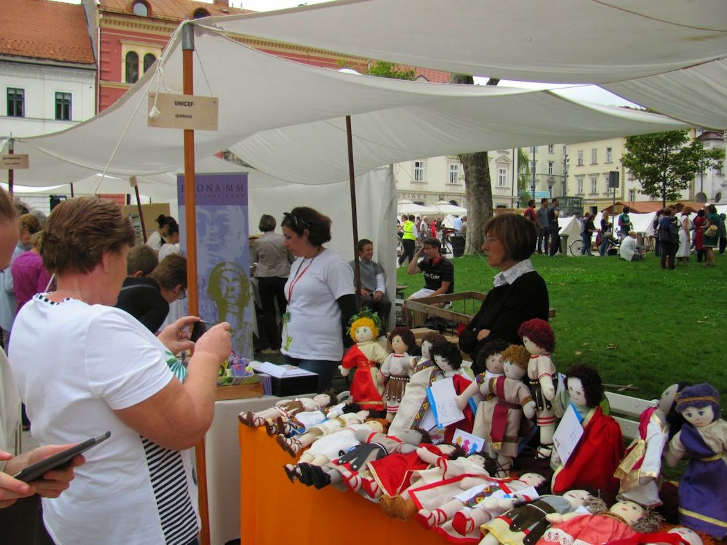 Med temi dejavnostmi je bil prikazan tudi Unicefov program izdelovanja Punčk iz cunj, tokrat Emonci v rimskih oblačilih. To dolžnost so prevzele naše kolegice, prostovoljke iz mestne četrti Ljubljana Center in jo odlično izvedle. Na rimski tržnici so bili na prodaj izdelki obrtnikov, okrepčali pa smo se lahko v rimski taverni.