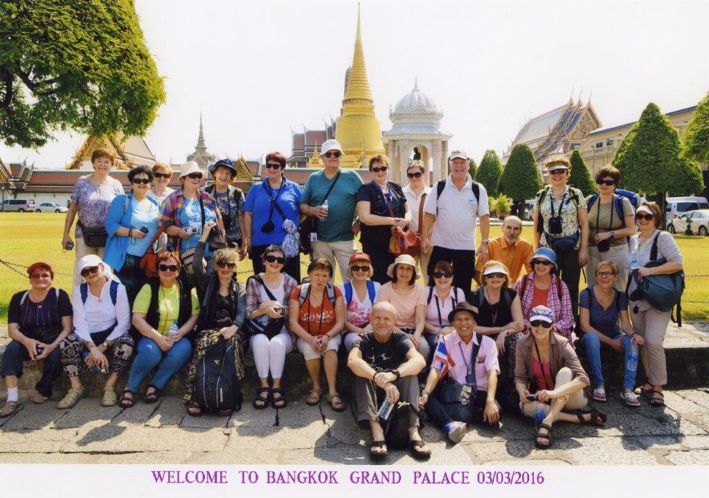 Gremo na Tajsko, v tople kraje. Iz Benetk, s postankom v Dohi, po skoraj 12 urah vožnje pristanemo na bangkoškem letališču. Časovna razlika je 6 ur, temperatura zraka je 35 stopinj. Pričaka nas Oskarjev vodič Brane, predstavi se nam tudi tajski vodič Nui in peljemo se proti hotelu. V avtobusu je klima prižgana na polno in iščemo široki selotejp, da bi prekrili šobe, ki se jih ne da zapreti. Prileže se nam kratek počitek, popoldne pa smo že v akciji. Zamenjamo evre v njihove bahte in se sprehodimo po živahni ulici Khao San, polni ljudi, trgovin, ponujajo masažo, hrano. V mirni stranski ulici si privoščimo odlično kavico in kozarec hladnega piva, nekateri pa že uživajo na masaži.