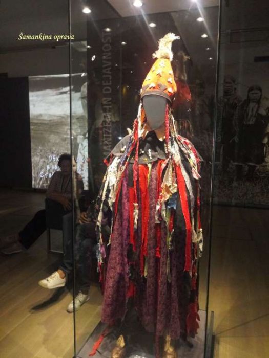 Najprej smo obiskale Slovenski etnografski muzej in si ogledale razstavo Šamanizem ljudstev Sibirije. Na razstavi je bilo predstavljenih osemdeset redkih etnografskih predmetov in štirideset arhivskih fotografij iz zbirk Ruskega etnografskega muzeja, ki odstira duhovno kulturo 15 (od 45) avtohtonih sibirskih ljudstev iz poznega 19. stoletja in prve polovice 20. stoletja, zlasti Evenkov, Čukčev in Udehov. Območja, ki so jih naseljevala sibirska ljudstva (tundra, gore, jezera, tajga, stepe), so bila okolje, v katerem se je izoblikovala njihova predstava o modelu sveta. Ta model in skrivnost šamanizma je posebno pojmovanje zgradbe sveta, sestavljenega iz treh delov – zgornjega, to je neba, kjer prebivajo bogovi, srednjega, to je zemlje, kjer živijo ljudje, in spodnjega, to je podzemlja umrlih. Ti svetovi so med seboj povezani z osrednjo osjo (axis mundi). Simbol te svete navpičnice je drevo sveta, iz katerega si je šaman izdelal svoj boben.