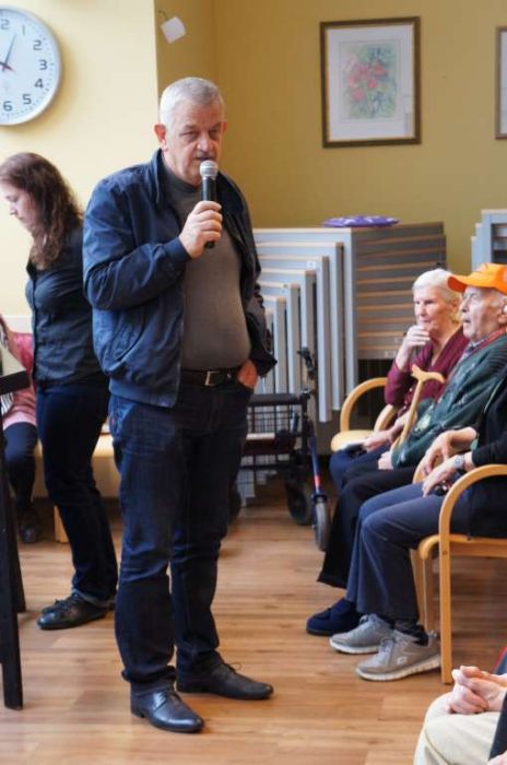 Naslednji torek, 22. 10. 2019, ko imamo sicer učne ure etnologije, pa smo si ogledale razstavo ob stoletnici rojstva Franceta Ahčina v Menačenkovi domačiji, njegovi rojstni hiši. Vodila nas je kustosinja Katarina Rus Krušelj in predstavila mejnike njegove življenjske poti, ki jih na razstavi vidimo kot slikovno in snovno gradivo. France Ahčin je bil 1943 vpisan na Umetniško akademijo v Firencah, od tod pa ga je pot preko Rima vodila v Argentino, kjer je deloval kot kipar, ukvarjal pa se je tudi z lončarsko obrtjo. Zelo si je želel, da bi njegova dela pripotovala v domovino in s stalno zbirko na domačiji na v KD F. Bernika se mu je želja izpolnila.