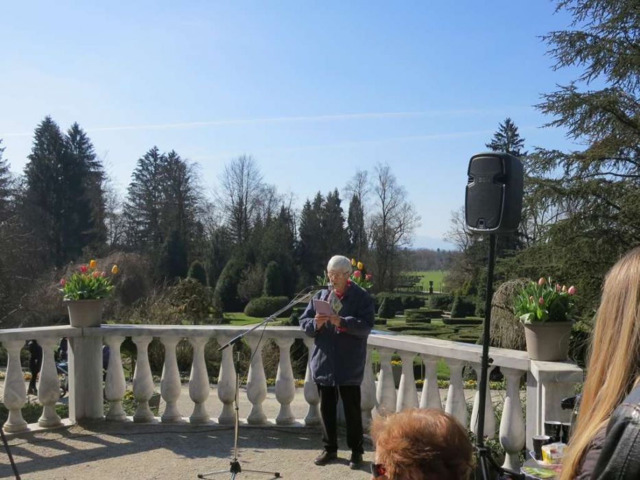 Danes je prvi pomladni dan, dan poezije, dan gozda in Downovega sindroma… in članice literarnega krožka pri Lipi U3ŽO so se odločile, da bodo brale poezijo. Pa ne kjerkoli! Zbrale so se v francoskem delu parka v Arboretumu, na terasi, že obkroženi s prvim pomladnim cvetjem. Recital je pričela vodja krožka ga. Zlatka Levstek: »Besede so med, sladka brv prijateljstva, spletene črke, most odkritosti, majava, a trdna vez, ki povezuje in boža«. Poudarila je, da so izdali že petnajst zbornikov poezije, ki združujejo tudi ustvarjalce iz drugih slovenskih krajev, letos pa pripravljajo že šestnajstega.