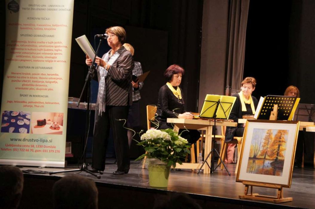 Poetične besede 15 literatov Lipe in 7 literatk iz drugih U3ŽO so popestrile citrarke in kitaristke Društva Lipa, Plesna skupina Češminke iz Lipe in Šole zdravja Domžale in pevka, gimnazijka Barbara Pavlič, ki jo je na klavir spremljala Teja Komar.