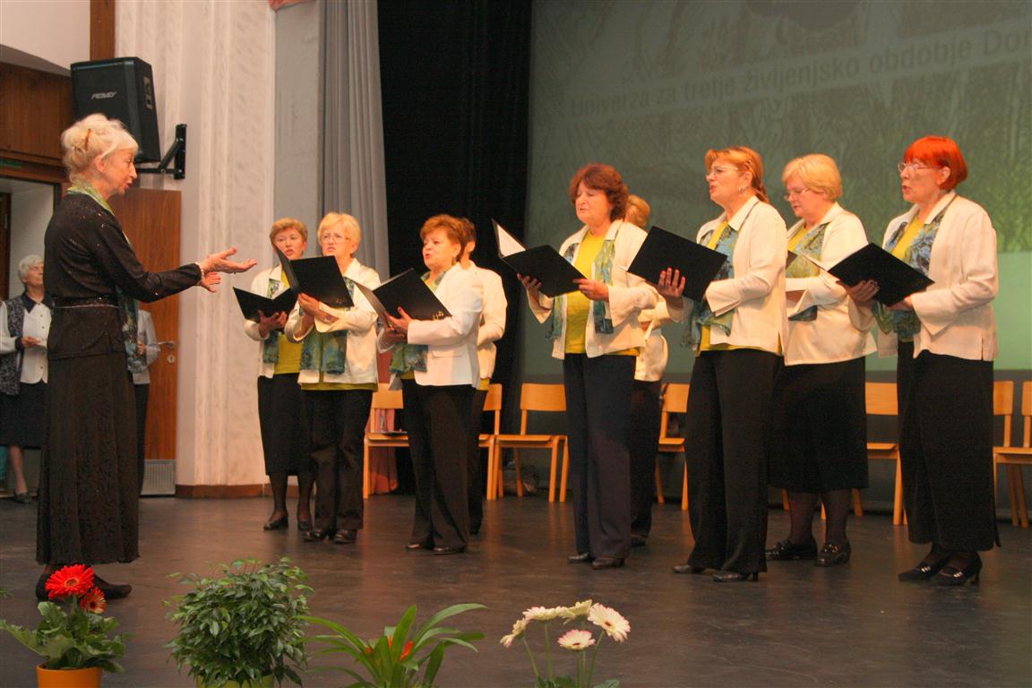 Za uvod v program je predsednica društva Metka Zupanek v pogovoru z voditeljico in povezovalko programa Drago Jeretina Ahčin predstavila začetke delovanja društva. S ponosom je tudi predstavila uspehe in ustvarjalnost njihovih članov ter na koncu dodala, da je njena želja v prihodnosti predvsem ta, da bo tudi v naprej prisotna družbena skrb za zagotavljanje pogojev za kreativna zlata leta.